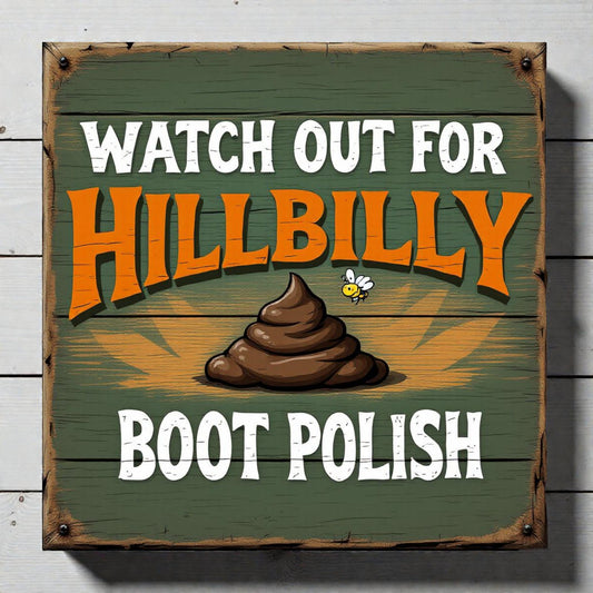 Rustic Country Dog Warning Sign – “Watch Out for Hillbilly Boot Polish”