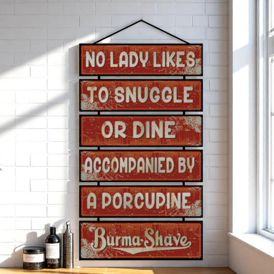 Burma Shave Style Metal Sign – No Lady Likes to Snuggle