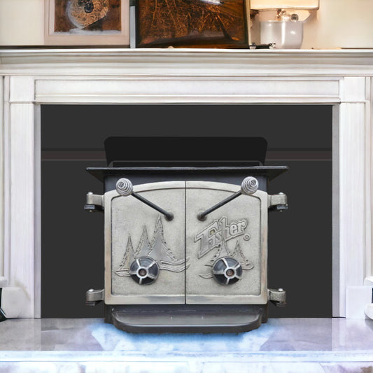 Grandma Bear Fisher Wood Stove Insert Nickel & Glass Doors