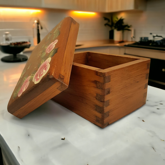 Finger Jointed Wooden Recipe Box Keepsake Dovetailed Box