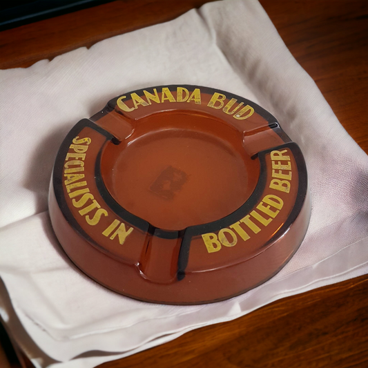 Antique Canada Bud Amber Glass Ashtray Beer Advertising