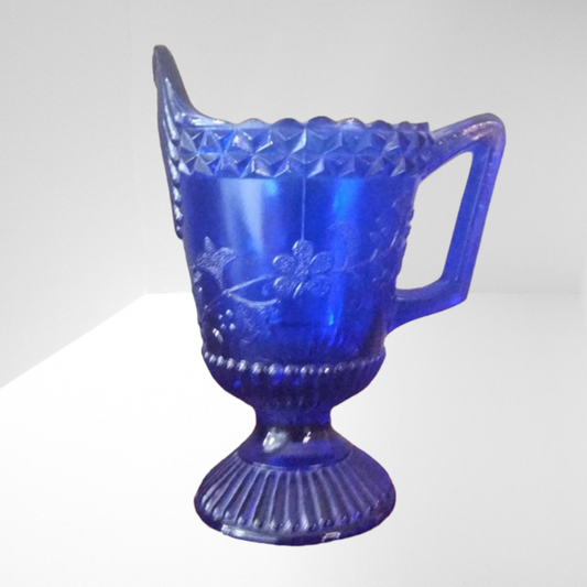 Cobalt Blue Pressed Glass Cream Pitcher Glass Collectible