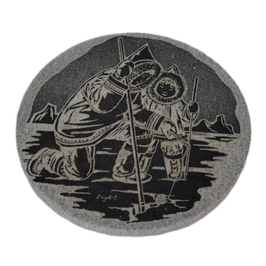 Genuine Inuit Soapstone Carving Aboriginal Fishing Scene EngArt