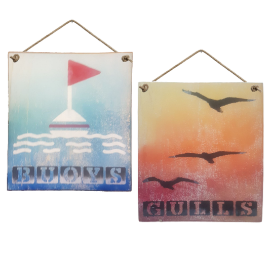 Bathroom Signs Nautical Decor Buoys and Gulls