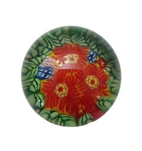 Paper Weight Art Glass Murano Paperweight Orange and Green Millefiori