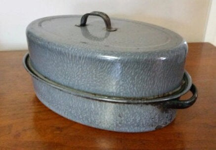 Antique Graniteware Chicken Roasting Pan Enamelware Pot