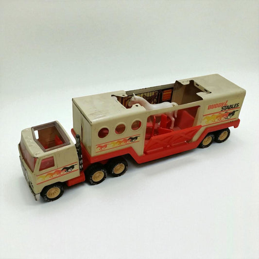 Vintage Buddy L Tin Toy Stable Truck with Horse Figurine