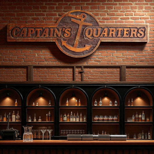 Massive Vintage Hand-Carved Captain’s Quarters Bar Sign