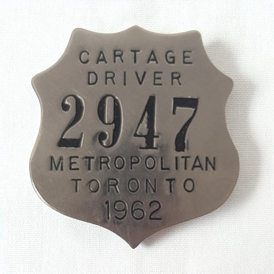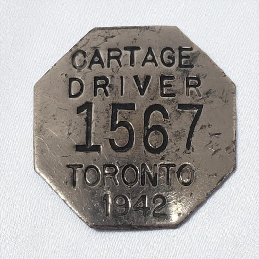 Antique 1942 Cartage Driver's Taxi Cap Badge Toronto Canada