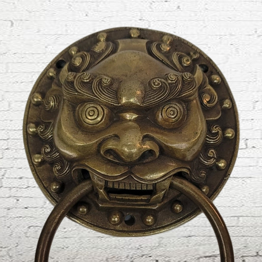 Antique Oriental Brass Door Knocker Gargoyle Face