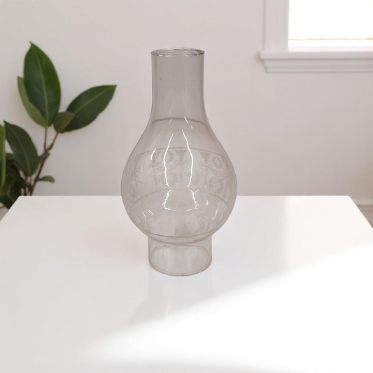 Vintage Hurricane Oil Lamp Replacement 10" x 3" Floral Design Glass Globe