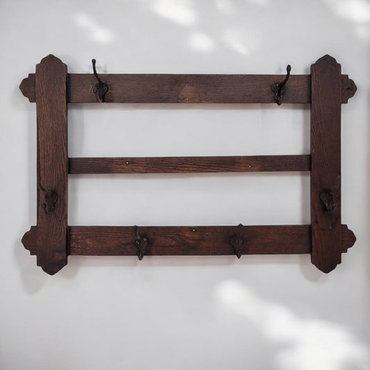 Antique 1/4 Sawn Oak Arts and Crafts Wall Hanging Coat Rack!