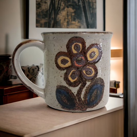Art Pottery Coffee Cup Hand Painted Floral Design MCM Hippy Dippy Flower Power