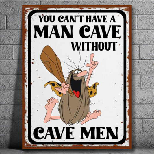 Rustic Metal Man Cave Sign | “You Can’t Have a Man Cave Without Cavemen”