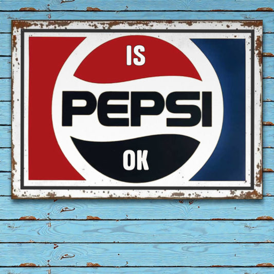 Rustic Pepsi Metal Sign “Is Pepsi Okay?” | Vintage Soda Pop Wall Decor