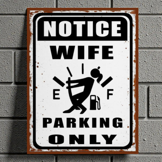 Funny Wife Parking Only Sign – Notice Wife Parking – Humorous Gas Gauge Car Sign