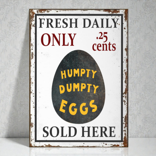 Fresh Daily Humpty Dumpty Eggs Rustic Farm Kitchen Metal Sign Country Decor