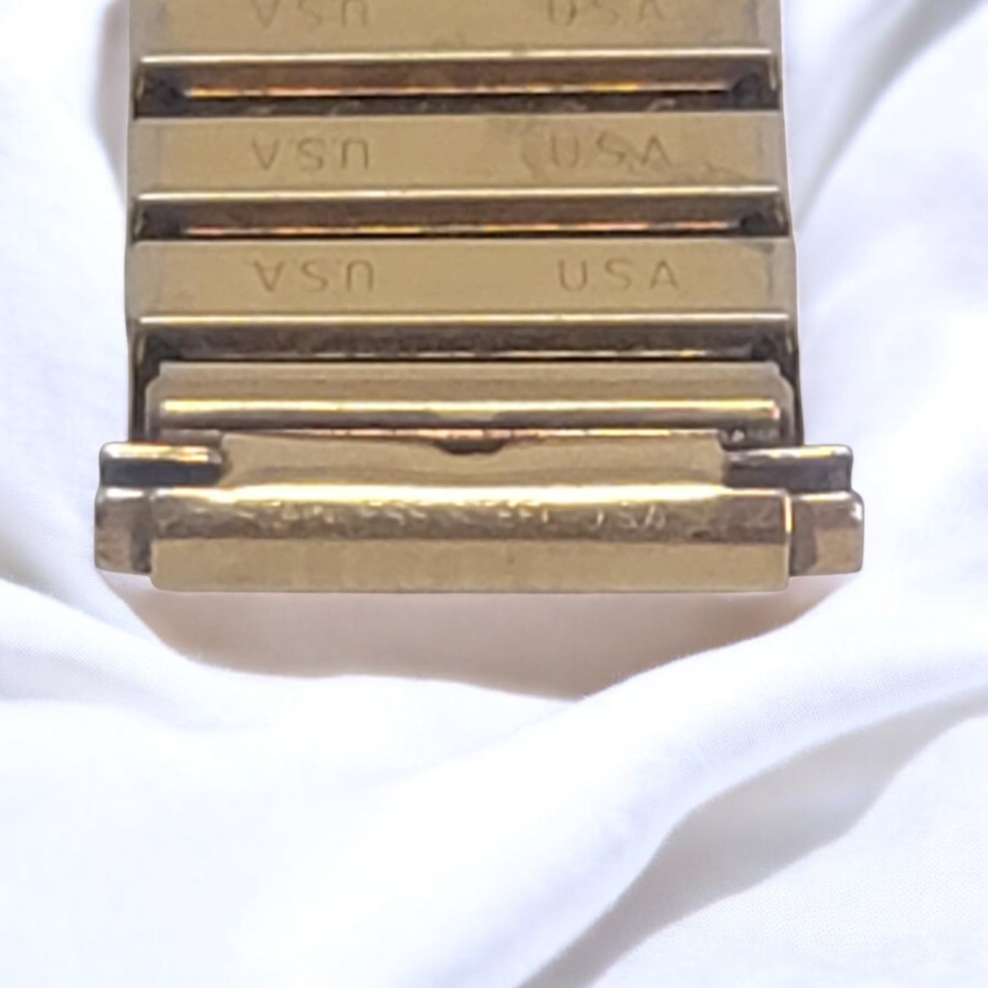This vintage gold-tone expandable watch band is a top-quality piece made in the USA.